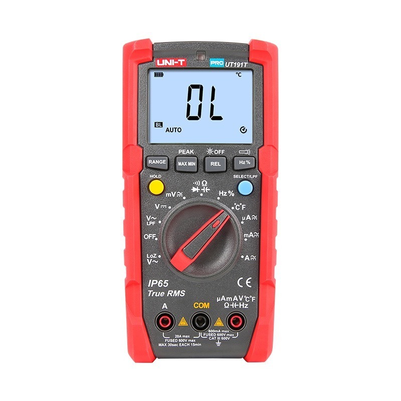 Цифровой мультиметр UNI-T UT191T — это профессиональный измерительный прибор, предназначенный для выполнения точных электрических измерений в сложных условиях. Эта модель соответствует международным стандартам безопасности и разработана специально для использования в промышленных и коммерческих приложениях, где требуется высокая надежность и точность.