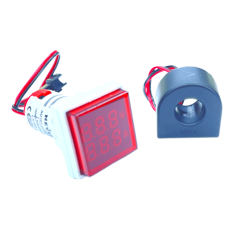 Индикатор значения тока и напряжения красный AD101-22VAMS 0-100A 20-500В