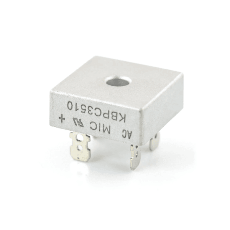 KBPC3510 — это мощный кремниевый диодный выпрямитель, предназначенный для преобразования переменного тока в постоянный при нагрузке до 35 ампер и пиковом обратном напряжении до 1000 В. Идеален для промышленных источников питания, преобразователей частоты, зарядных устройств и силовой электроники, где необходима высокая надёжность и эффективность.
