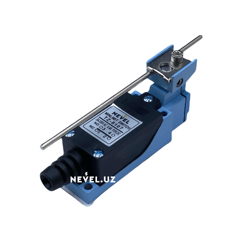 ME 8107 — это механический концевой выключатель с поворотным рычагом и боковым роликом, предназначенный для ограничения перемещений и фиксации крайних положений подвижных механизмов в системах автоматизации и промышленного оборудования.