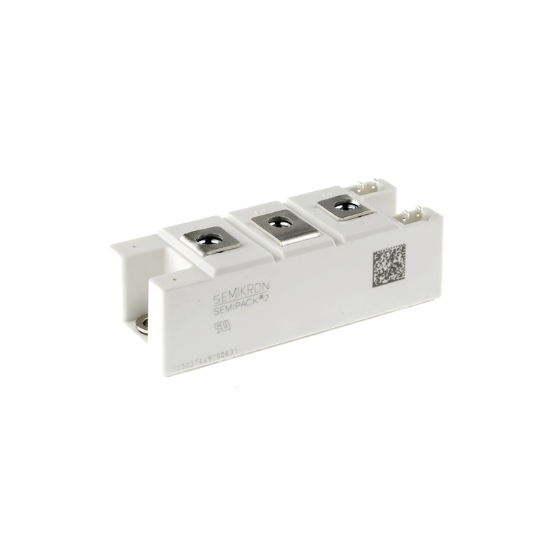 SKKT200/16E — это двухтиристорный модуль от компании Semikron, предназначенный для выпрямительных и коммутационных задач в цепях переменного тока. Объединяет в одном корпусе два тиристора, соединённых по полумостовой схеме. Используется в промышленной автоматике, мощных преобразователях, регуляторах тока и напряжения, сварочном оборудовании, а также в системах плавного пуска электродвигателей.