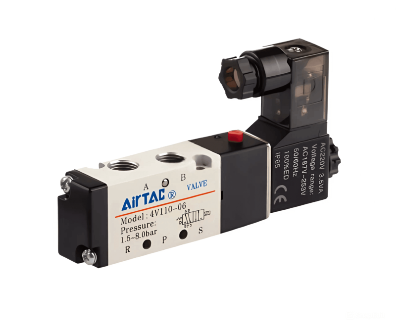 Соленоидный (электромагнитный) клапан 4V110-06 с напряжением питания 24 В DC предназначен для эффективного управления потоками сжатого воздуха в пневматических системах автоматизации. Клапан оснащён 5 портами и 2 положениями, обеспечивая быстрое, точное и стабильное переключение воздушных потоков. Корпус клапана выполнен из алюминиевого сплава, гарантирующего надёжность, долговечность и устойчивость к механическим воздействиям. Компактные размеры позволяют легко интегрировать клапан в системы с ограниченным пространством монтажа.