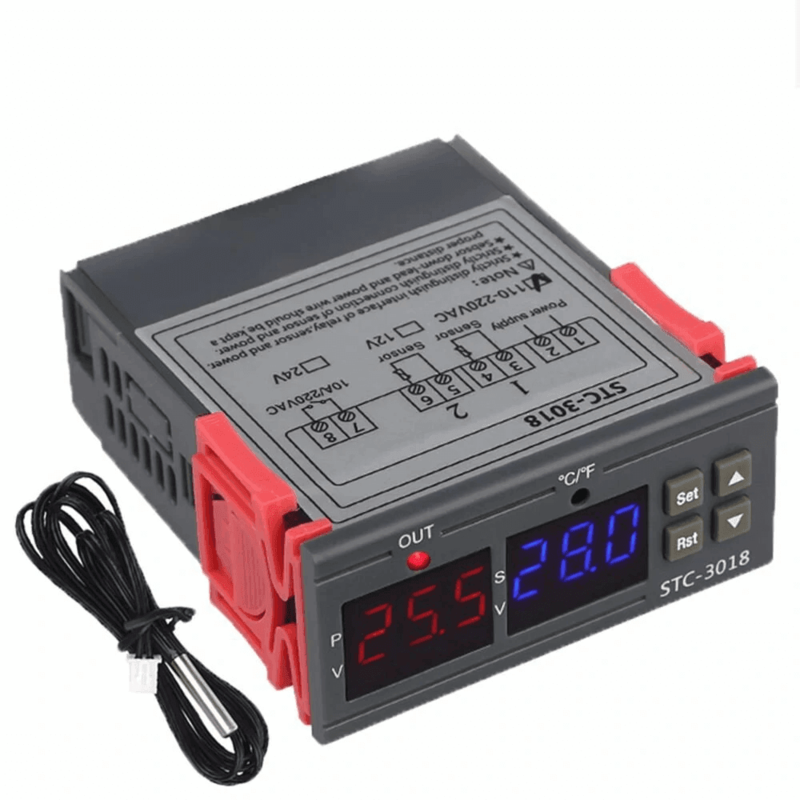 STC-3018 — это компактный одноканальный цифровой терморегулятор, предназначенный для автоматического управления нагревом или охлаждением. Он широко применяется в инкубаторах, аквариумах, системах обогрева, теплицах и других местах, где требуется поддержание стабильной температуры.