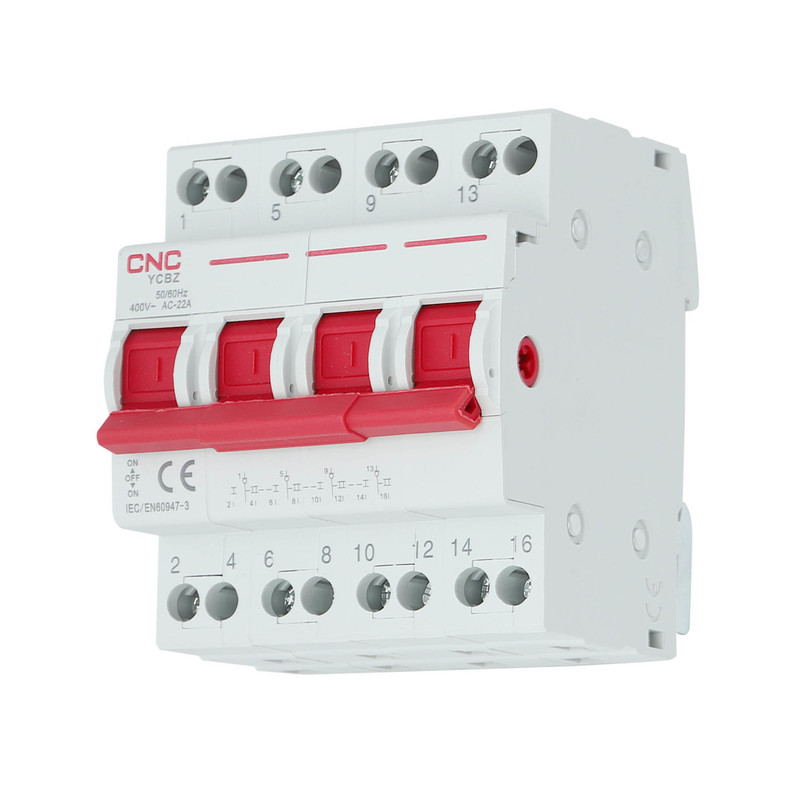 Трехпозиционный переключатель YCBZ-125 4P 100A — это мощное устройство, предназначенное для управления четырехполюсными электрическими цепями с возможностью переключения между тремя состояниями (включение, отключение и резервное положение). Этот переключатель используется в промышленных, коммерческих и бытовых электроустановках для надежного и безопасного управления высокими электрическими нагрузками.