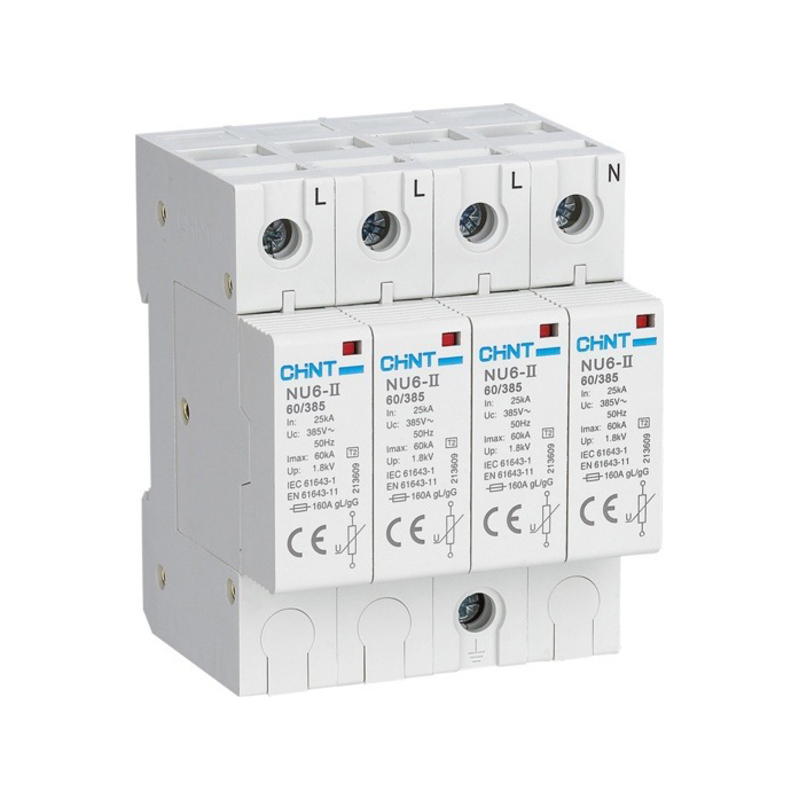 УЗИП (устройство защиты от импульсных перенапряжений) NU6-II 40kA 460V 4P предназначено для защиты четырехпроводных (трехфазных + нейтраль) электрических систем от импульсных перенапряжений, вызванных молниевыми разрядами, электромагнитными импульсами и другими высоковольтными скачками. Устройство эффективно защищает оборудование от повреждений, обеспечивая безопасность и стабильность работы электрических сетей. Данная модель рассчитана на номинальное рабочее напряжение 460 В и способна выдерживать импульсный ток до 40 кА.
