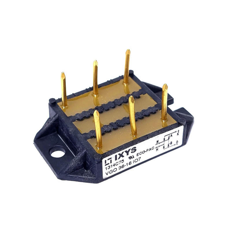 Диодный мост VGO36-16 IO7 предназначен для преобразования переменного тока в постоянный в мощных электрических цепях. Он используется в промышленных применениях, таких как преобразователи, источники питания и регуляторы напряжения. Обеспечивает высокую эффективность и надежность, что делает его идеальным для эксплуатации в сложных условиях.